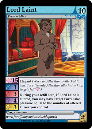 Skills: Elegant. During your refill step, if Lord Laint is altered, you may have target Furre take pleasure equal to the number of altered Furres you control. Flavor Text: [None] Artist: AcidaPluvia Edition: Climax 2 Rarity: Rare Collector's Number: 5 / 80 | |||||||||||