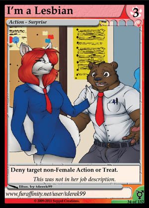 Gender: Female AP Cost: 3 GP Cost: ![]() Type: Action - Surprise Skills: Deny target non-Female Action or Treat. Flavor Text: This was not in her job description. Artist: tderek99 Edition: 2nd Vanilla Rarity: Uncommon Collector's Number: 34 / 132 |