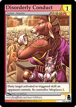 Gender: Female / Otherkind AP Cost: 1 GP Cost: ![]() ![]() Type: Action - Surprise Skills: Deny target activated or triggered skill an opponent controls. Its controller Misplaces 2. Flavor Text: [None] Artist: Shibara Edition: Fortune at Vell's End Rarity: Common Collector's Number: 139 / 162 | |